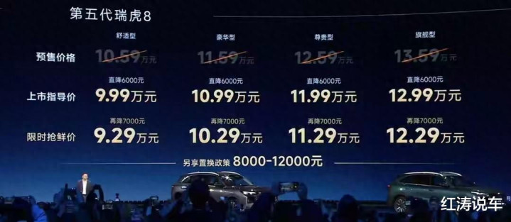 瑞虎8系列SUV取得了非常好的销量成绩,为奇瑞品牌发展起到了一定的作用!就在11月10日,全新瑞虎8正式上市,官方定义为第五代瑞虎8,官方指导价为9.99万元-12.99万元起,限时售价为9.29万元-12.29万元,新车提供虎款和豹款两种全新设计,尺寸大幅提升,并且动力方面也有所突破,下面我们就来看看全新瑞虎8的实力到底如何。
